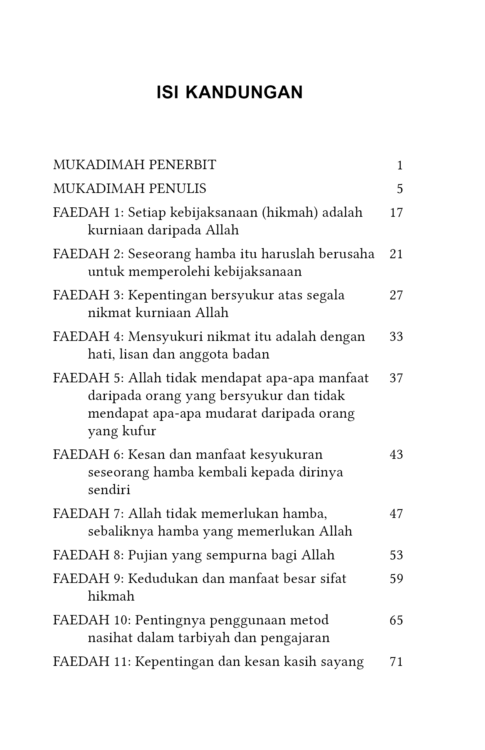 Allāh taʿālā telah mengurniakan hikmah kebijaksaan ini kepada Luqman, hamba-Nya yang soleh. Kisah Luqman ini berada dalam ayat 12 hingga 19 surah Luqman dalam al-Qurʾān dan Shaykh ʿAbd al-Razzāq bin ʿAbd al-Muḥsin al-Badr telah mengeluarkan sebanyak 50 faedah yang boleh didapati menerusi tadabbur ayat-ayat ini.