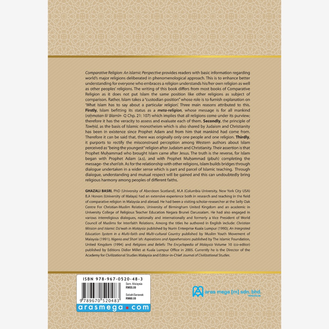 Comparative Religion : An Islamic Perspective provides readers with basic information regarding world’s major religions deliberated in phenomenological approach. This is to enhance better understanding for everyone who embraces a religion understand his/her own religion as well as other peoples’ religions.