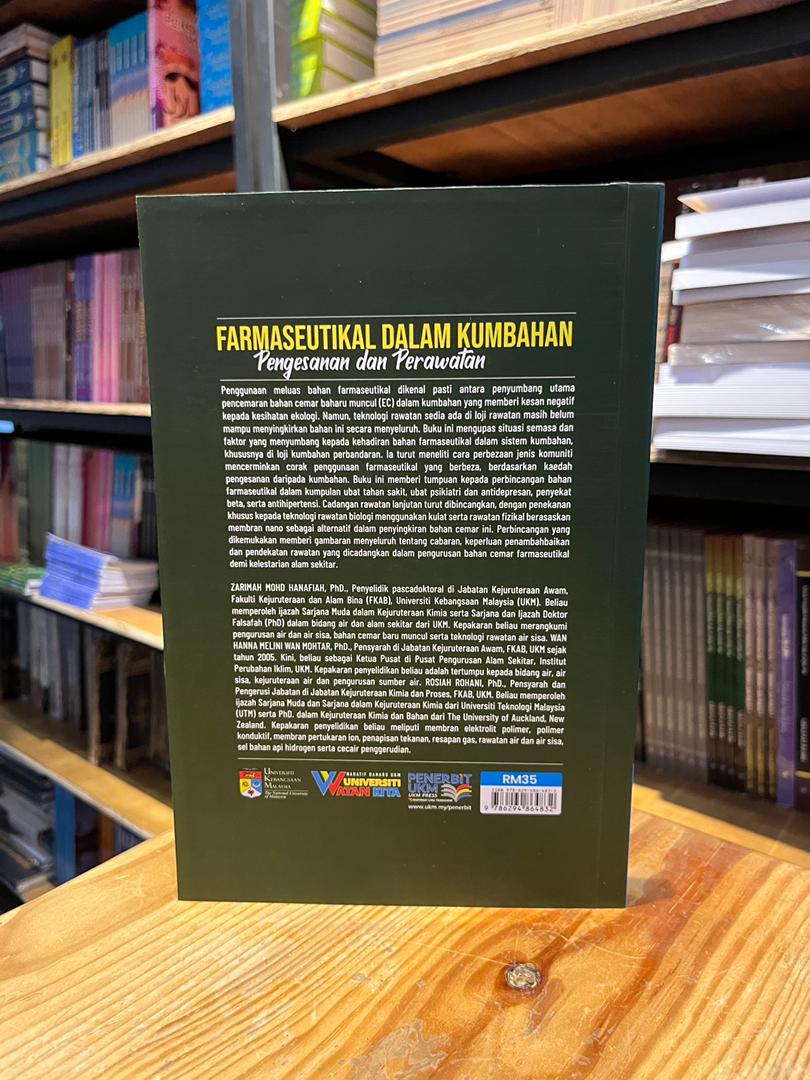 Penggunaan meluas bahan farmaseutikal dikenal pasti antara penyumbang utama pencemaran bahan cemar baharu muncul (EC) dalam kumbahan yang memberi kesan negatif kepada kesihatan ekologi. Namun, teknologi rawatan sedia ada di loji rawatan masih belum mampu menyingkirkan bahan ini secara menyeluruh. Buku ini mengupas situasi semasa dan faktor yang menyumbang kepada kehadiran bahan farmaseutikal dalam sistem kumbahan, khususnya di loji kumbahan perbandaran. la turut meneliti cara perbezaan jenis komuniti mencerminkan corak penggunaan farmaseutikal yang berbeza, berdasarkan kaedah pengesanan daripada kumbahan. Buku ini memberi tumpuan kepada perbincangan bahan farmaseutikal dalam kumpulan ubat tahan sakit, ubat psikiatri dan antidepresan, penyekat beta, serta antihipertensi. Cadangan rawatan lanjutan turut dibincangkan, dengan penekanan khusus kepada teknologi rawatan biologi menggunakan kulat serta rawatan fizikal berasaskan membran nano sebagai alternatif dalam penyingkiran bahan cemar ini. Perbincangan yang dikemukakan memberi gambaran menyeluruh tentang cabaran, keperluan penambahbaikan dan pendekatan rawatan yang dicadangkan dalam pengurusan bahan cemar farmaseutikal demi kelestarian alam sekitar.