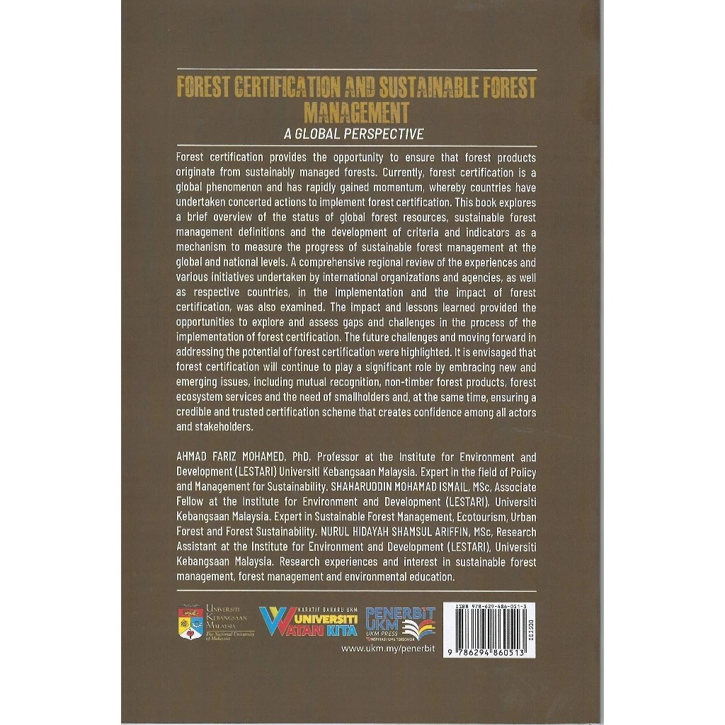 This book provides a brief overview of the status of global forest resources, sustainable forest management definitions and the development of criteria and indicators as a mechanism to measure the progress of sustainable forest management at the global and national levels. These efforts provided the basis for the development of standards for forest management certification. The current status and progress of forest certification at the global level were also looked at. A comprehensive regional review was conducted on the various experiences and initiatives undertaken by international organizations and agencies, as well as respective countries, in the implementation and impact of forest certification. The lessons learned provided opportunities to explore and assess gaps and challenges in the process of the implementation of forest certification. The future challenges and options moving forward to boost the potential of forest certification are highlighted in this book.