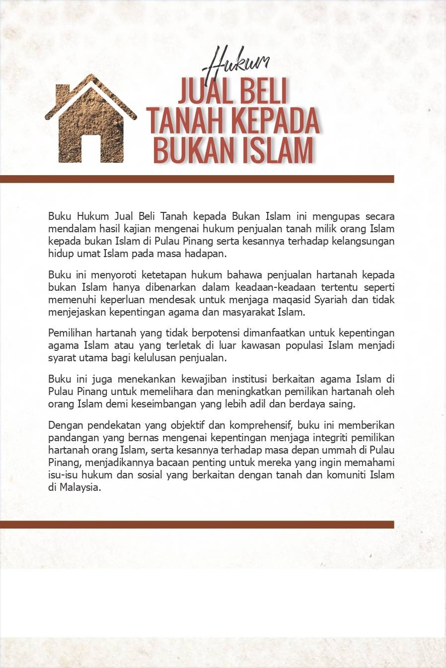 Buku Hukum Jual Beli Tanah kepada Bukan Islam ini mengupas secara mendalam hasil kajian mengenai hukum penjualan tanah milik orang Islam kepada bukan Islam di Pulau Pinang serta kesannya terhadap kelangsungan hidup umat Islam pada masa hadapan.