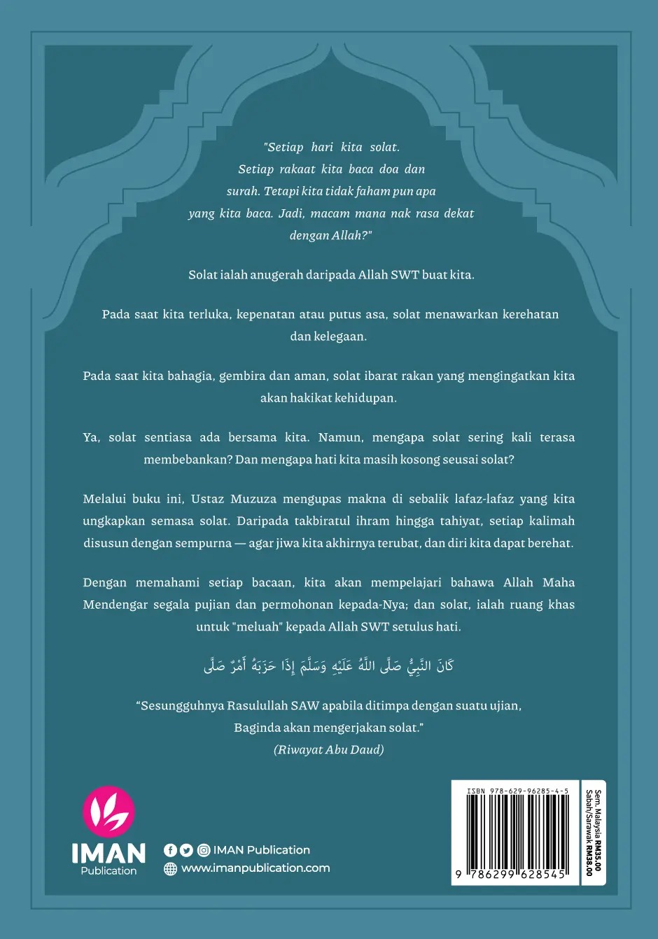 Melalui buku ini, Ustaz Muzuza mengupas makna di sebalik lafaz-lafaz yang kita ungkapkan semasa solat. Daripada takbiratul ihram hingga tahiyat, setiap kalimah disusun dengan sempurna — agar jiwa kita akhirnya terubat, dan diri kita dapat berehat.