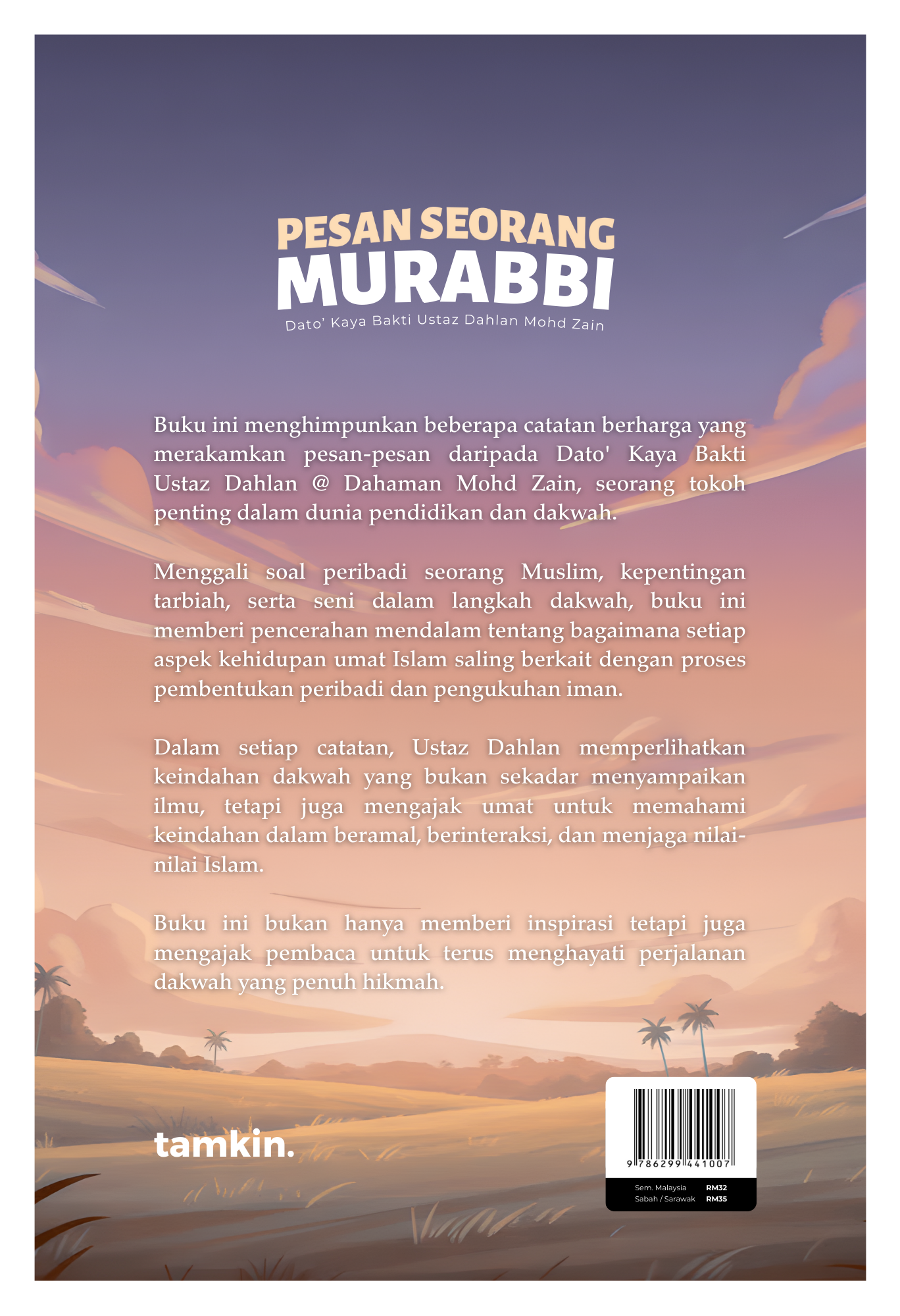 Buku ini menghimpunkan beberapa catatan berharga yang merakamkan pesan-pesan daripada Dato' Kaya Bakti Ustaz Dahlan @ Dahaman Mohd Zain, seorang tokoh penting dalam dunia pendidikan dan dakwah.