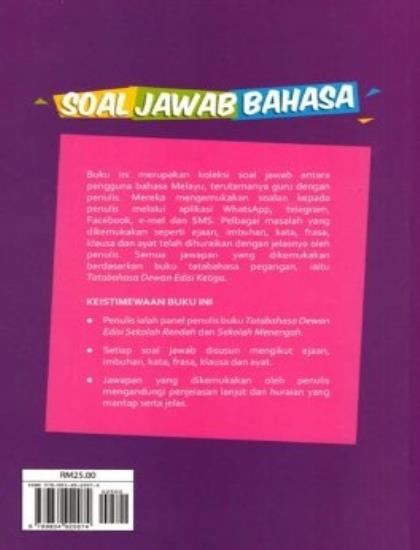 Buku ini merupakan koleksi soal jawab antara pengguna bahasa Melayu, terutamanya guru dengan penulis. Mereka mengemukakan soalan kepada penulis melalui aplikasi Whatsapp, telegram, Facebook, emel dan SMS. Pelbagai masalah yang dikemukakan ejaan, imbuhan, frasa, kata, klausa dan ayat telah dihuraikan dengan jelasnya oleh penulis. Semua jawapan dikemukakan berdasarkan buku tatabahasa pegangan iaitu Tatabahasa Dewan Edisi Ketiga.